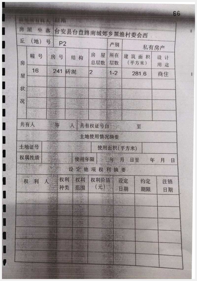 地址:臺(tái)安縣臺(tái)盤(pán)路南城郊鄉(xiāng)黑漁村委會(huì) 標(biāo)的號(hào):135