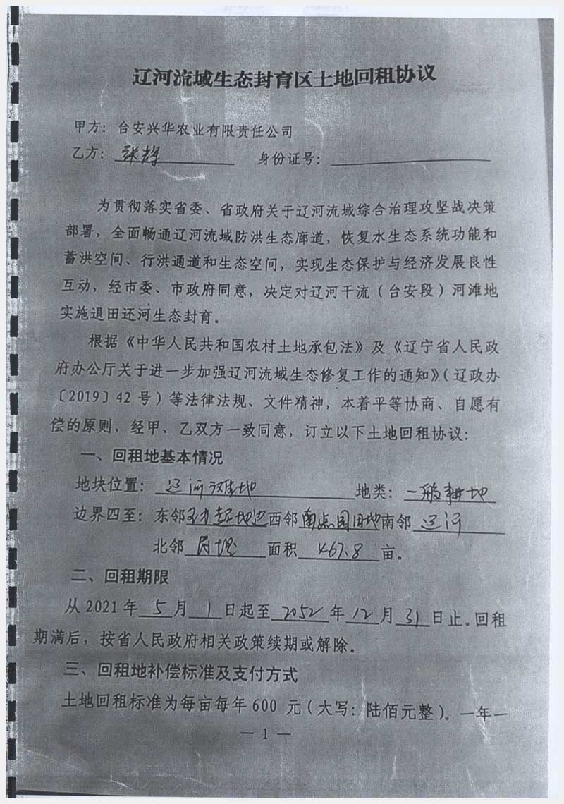 名稱:臺安縣富家鎮新華農場遼河灘地 面積:467.8畝 瀏覽次數:1347