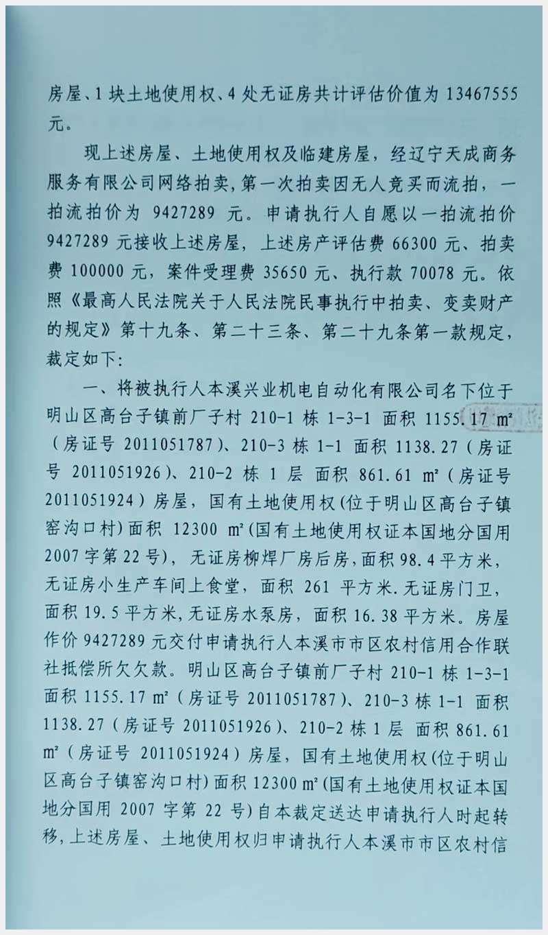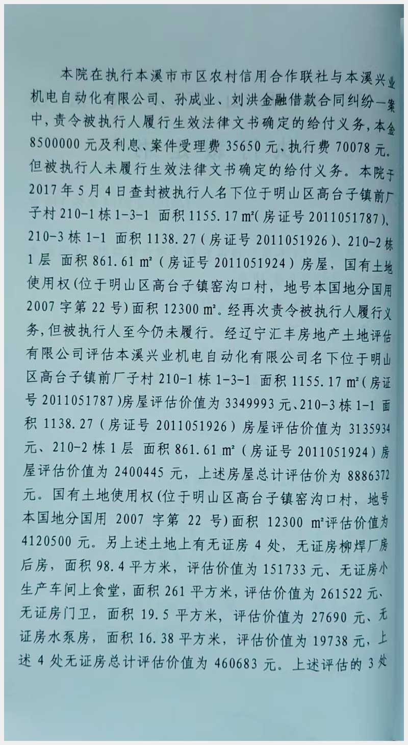地址:本溪市明山區(qū)高臺子前場路 標的號:9