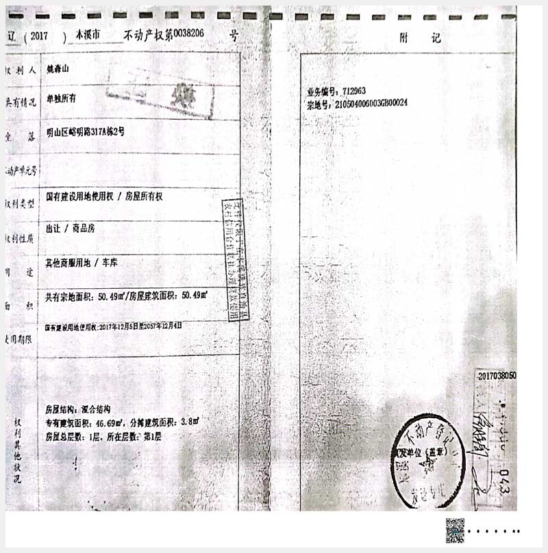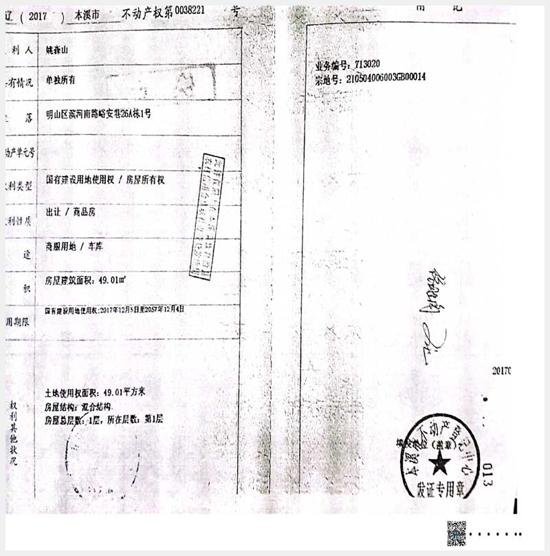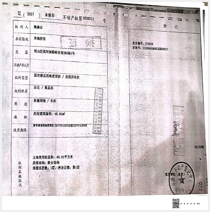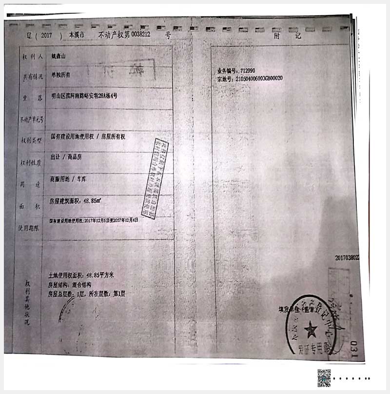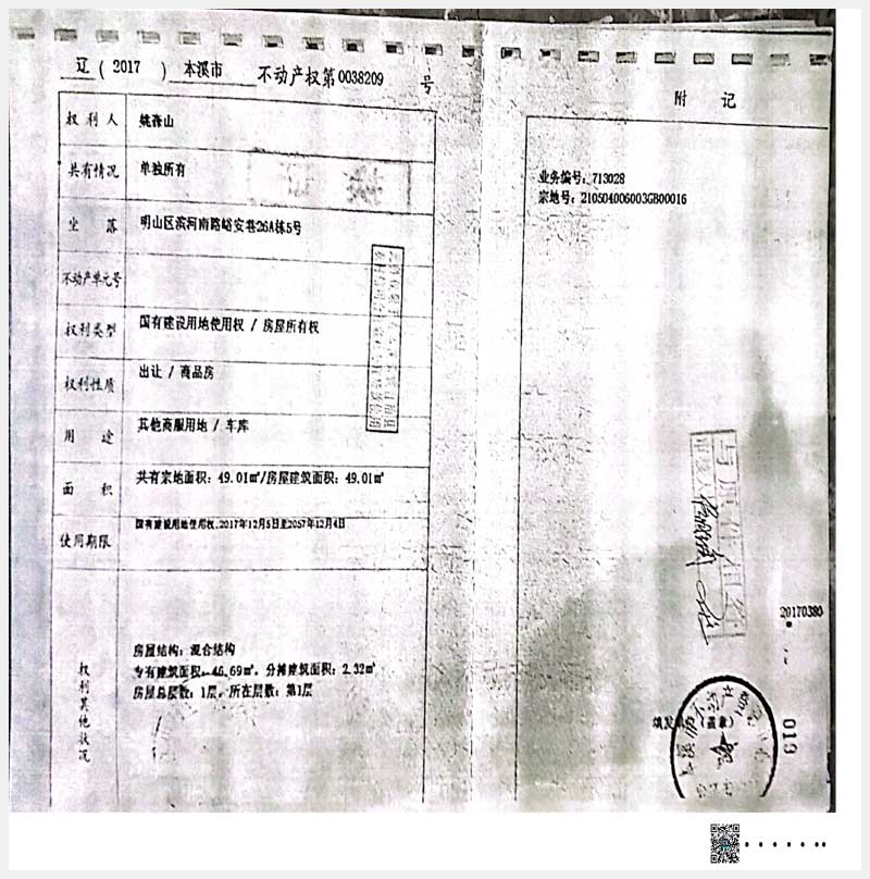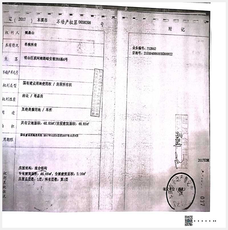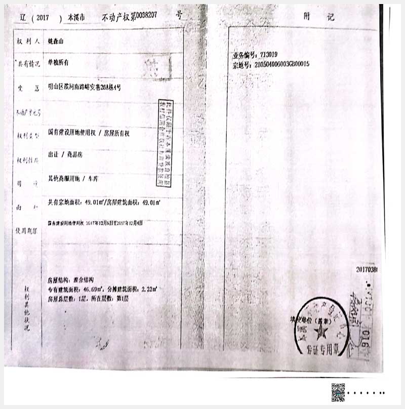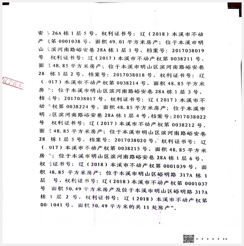 名稱:本溪市明山區濱河南路峪安巷26A棟1、4、5號,28棟1-6號,317A棟1、2號房產 面積:541.11㎡ 瀏覽次數:630