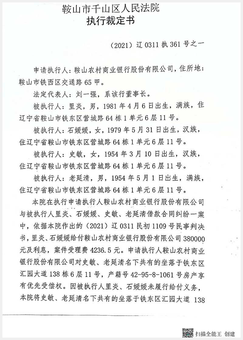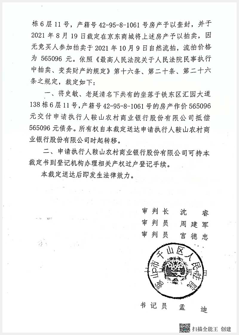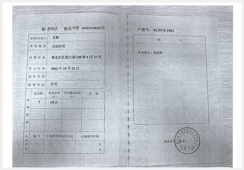 112號(hào) 鞍山市鐵東區(qū)匯園大道138棟6層11號(hào)房產(chǎn)