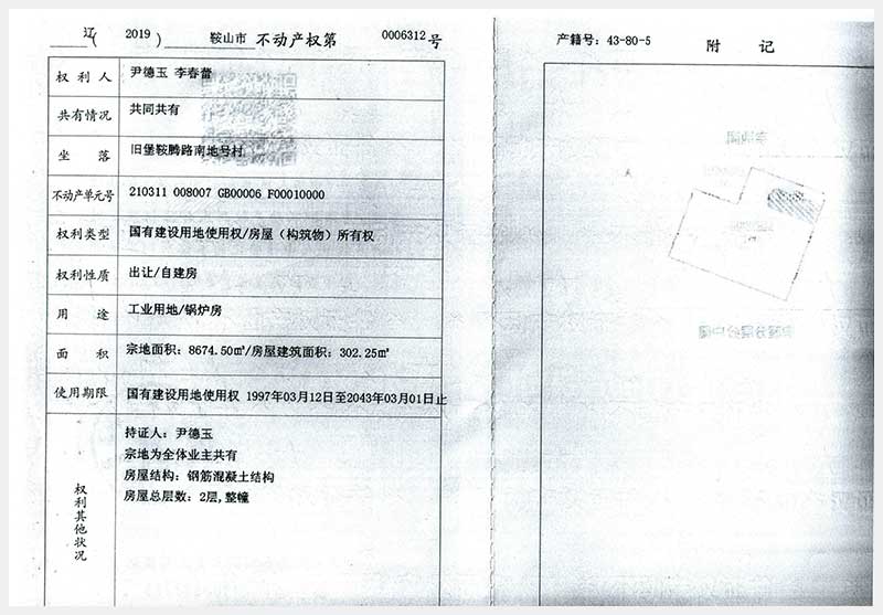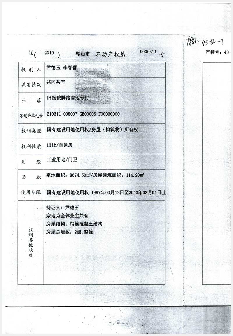 126號 鞍山市舊堡鞍騰路南地號村房產及土地使用權