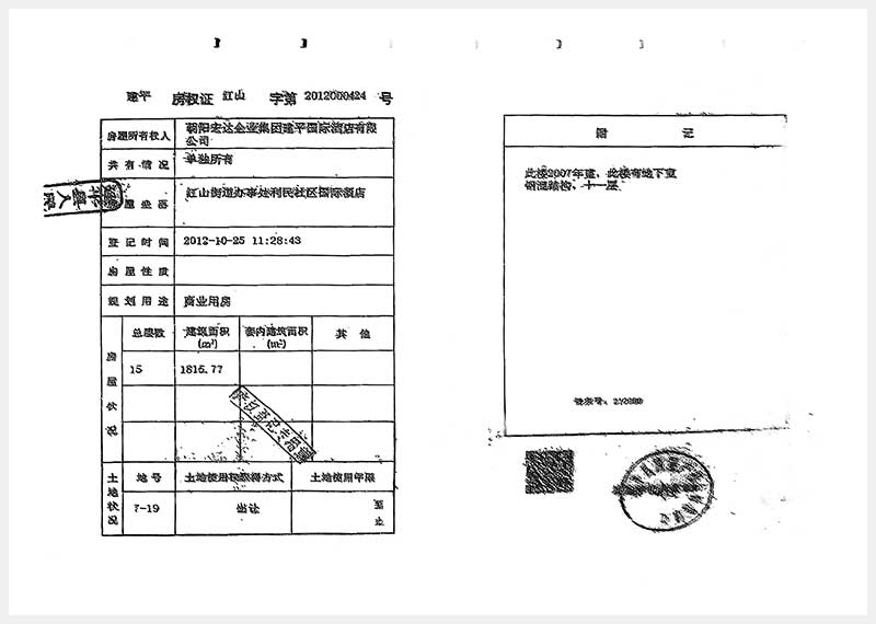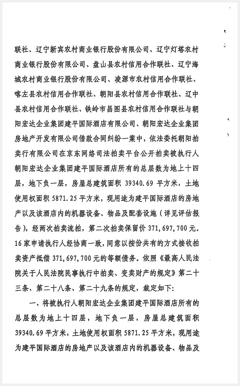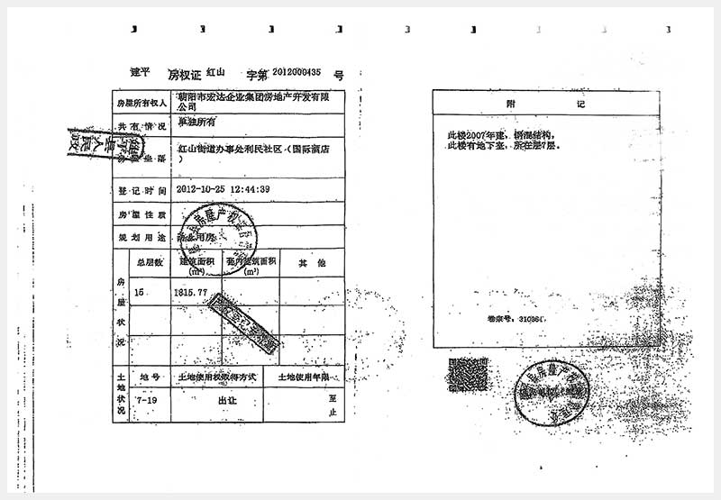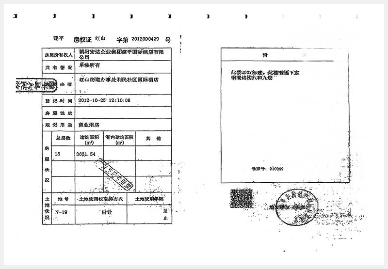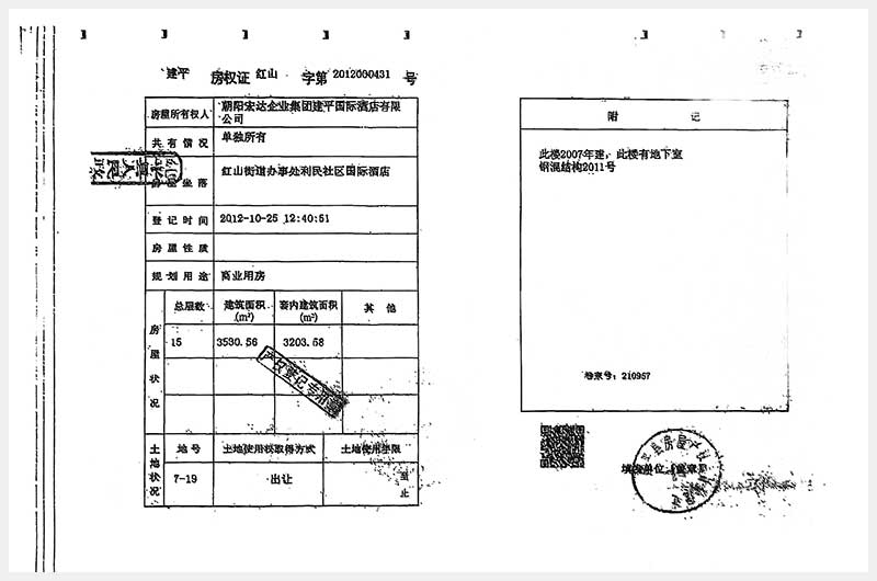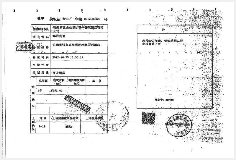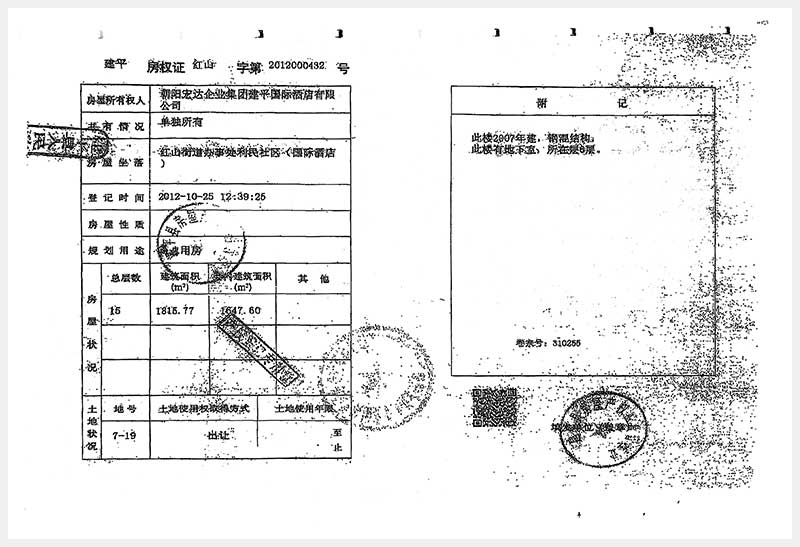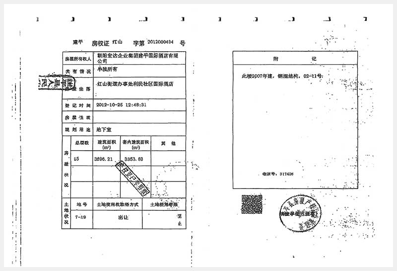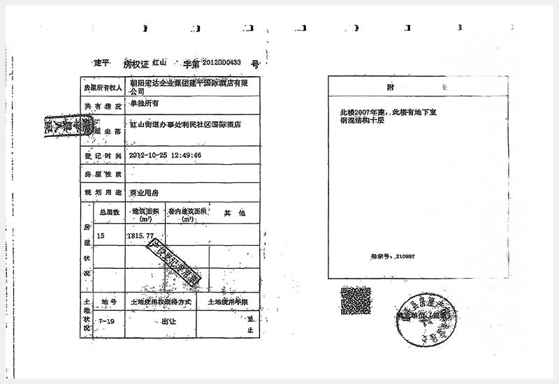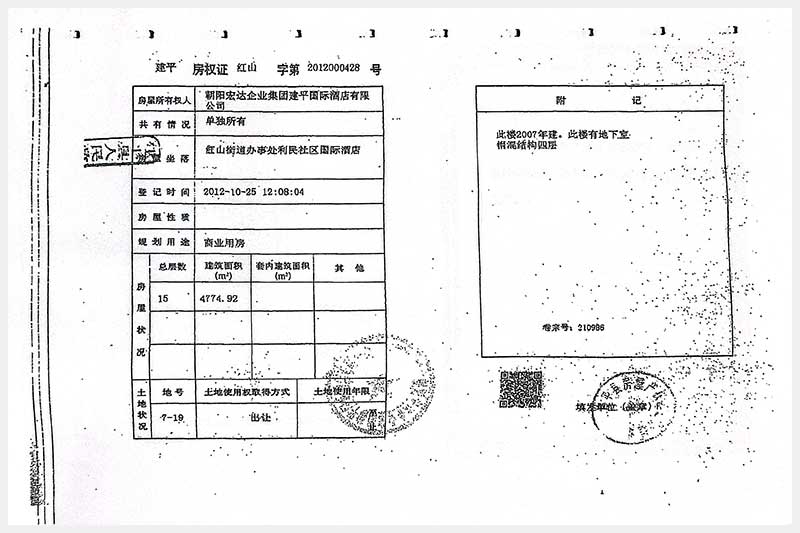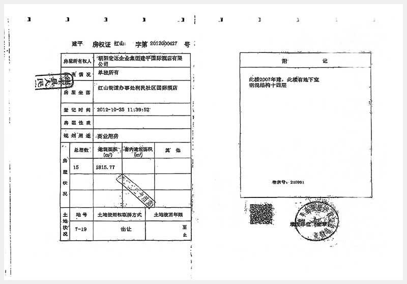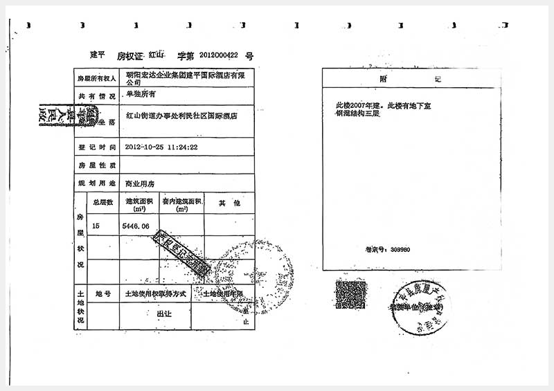 274號 朝陽市建平縣紅山街道辦事處利民社區國際酒店房產及土地使用權