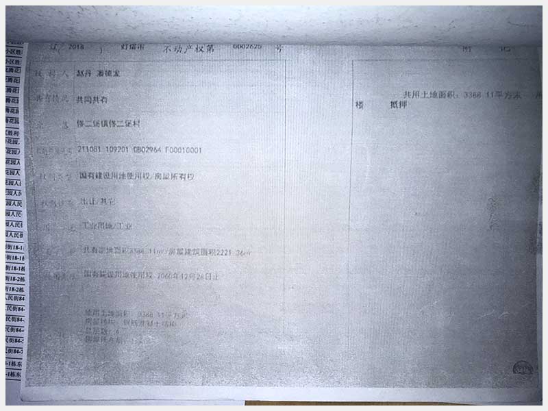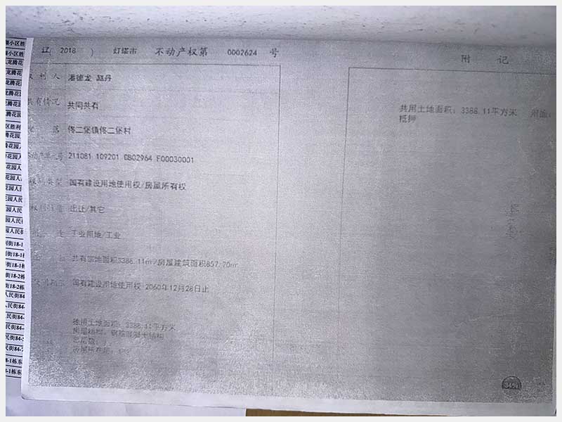 名稱:燈塔市佟二堡鎮佟二堡村房產及土地使用權 面積:房產:有證:3079.06㎡,無證:139.3㎡;土地:3388.11㎡ 瀏覽次數:22