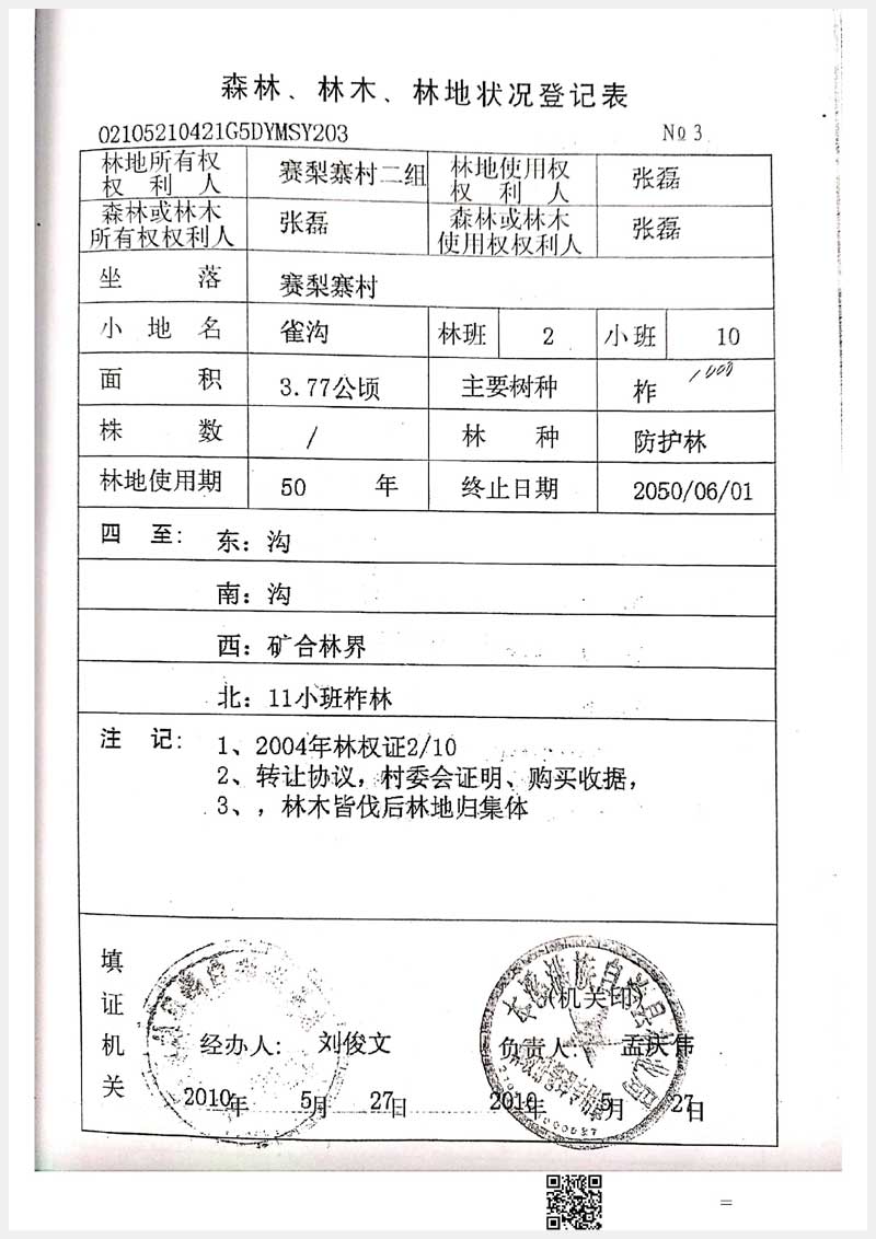 32號 本溪市滿族自治縣賽梨寨村二組林權