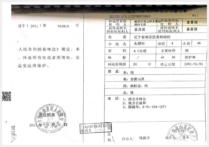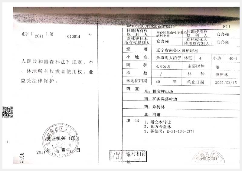 名稱:南芬區(qū)黃柏村頭道溝林權 面積:32.1公頃 瀏覽次數(shù):1874