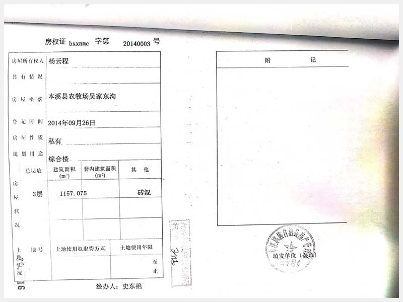 名稱:本溪縣農牧場吳家東溝房產 面積:1157.075㎡ 瀏覽次數:1625