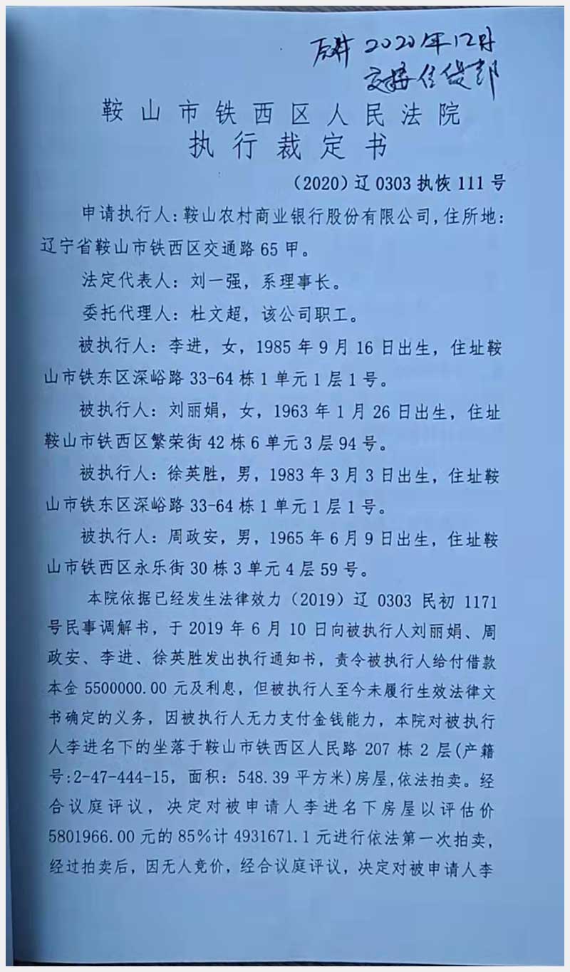 地址:鞍山市鐵西區人民路207號 標的號:71
