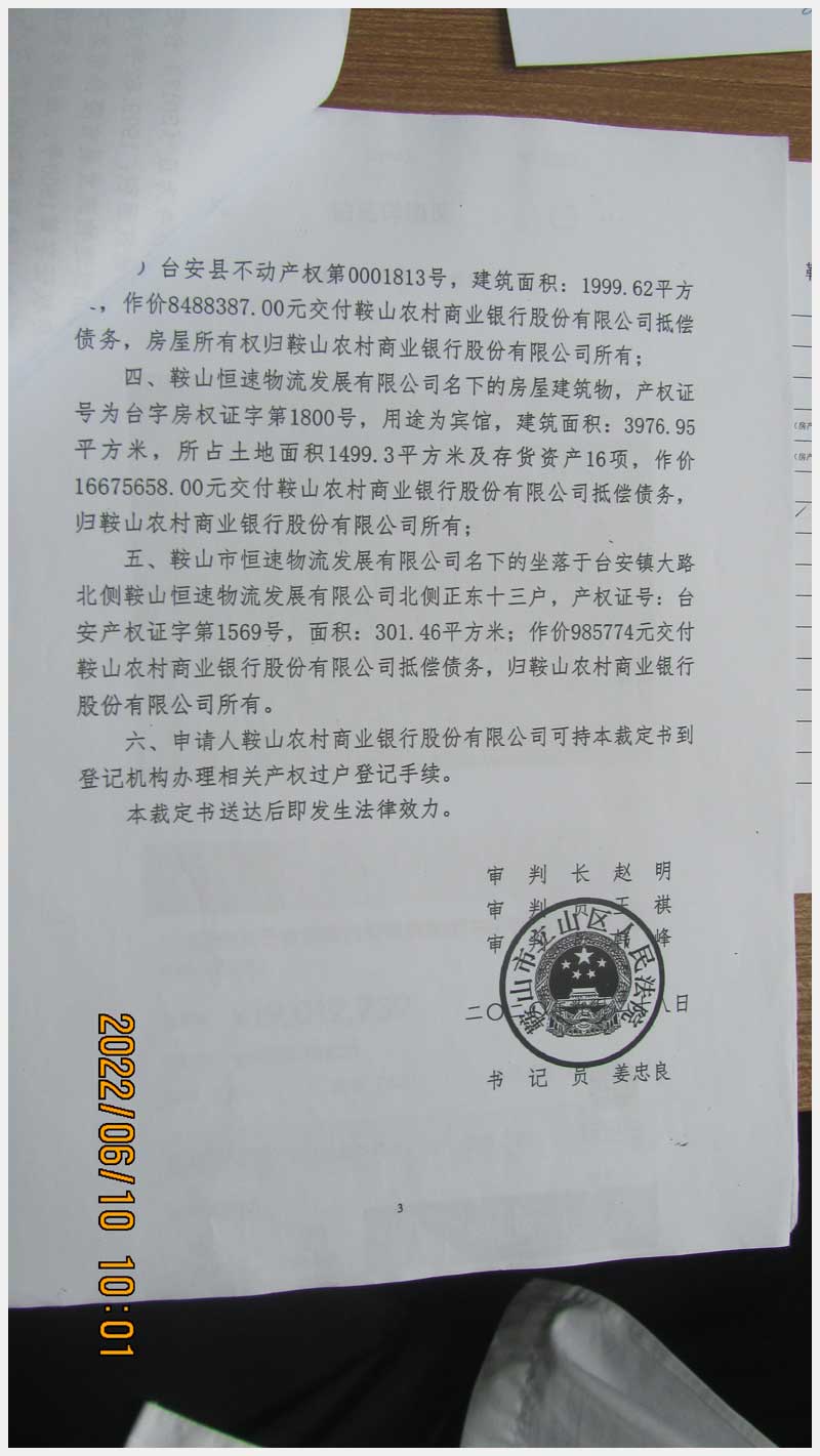 76號 臺安鎮臺大路北側鞍山恒速物流發展有限公司北側正房東十三戶房產