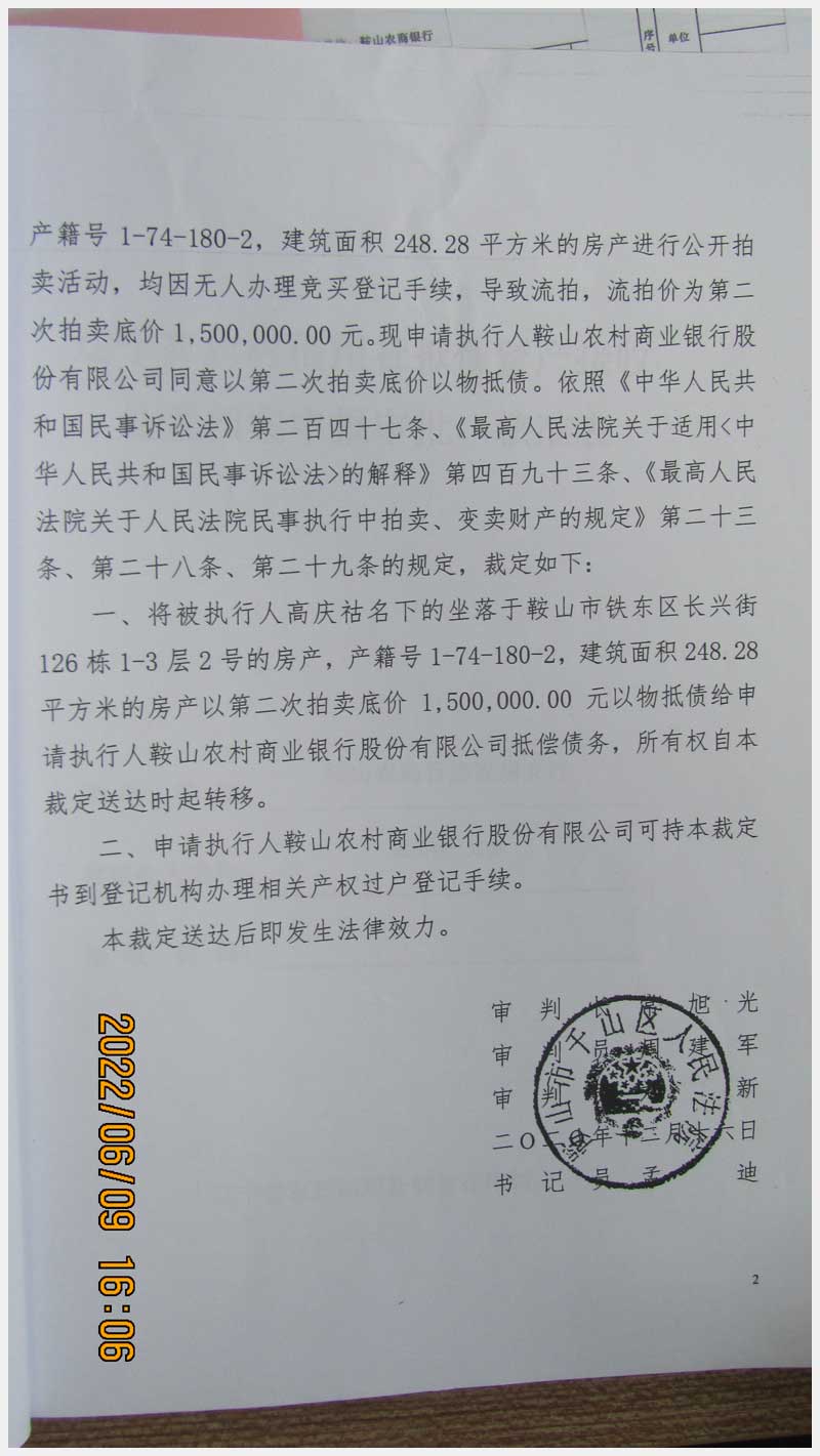 地址:鞍山市鐵東區長興街126棟 標的號:85
