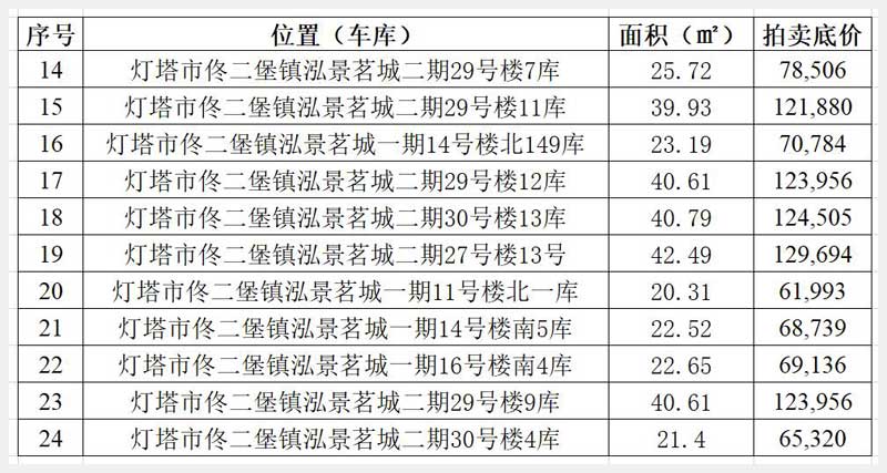 21號 遼陽市佟二堡鎮佟二堡村泓景茗城小區一期車庫