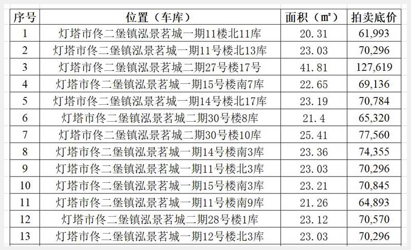 名稱:遼陽市佟二堡鎮佟二堡村泓景茗城小區一期車庫 面積:詳見圖片 瀏覽次數:299