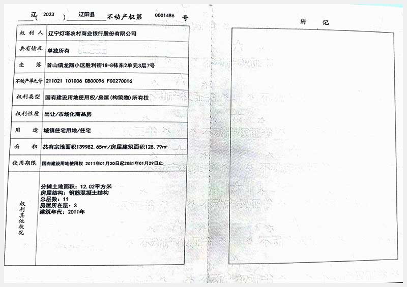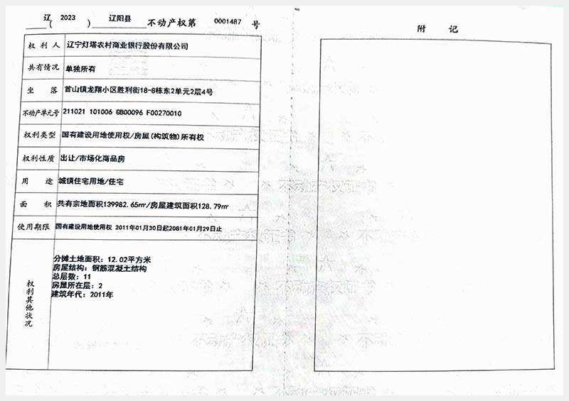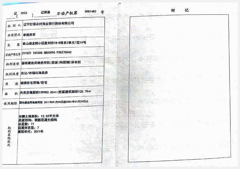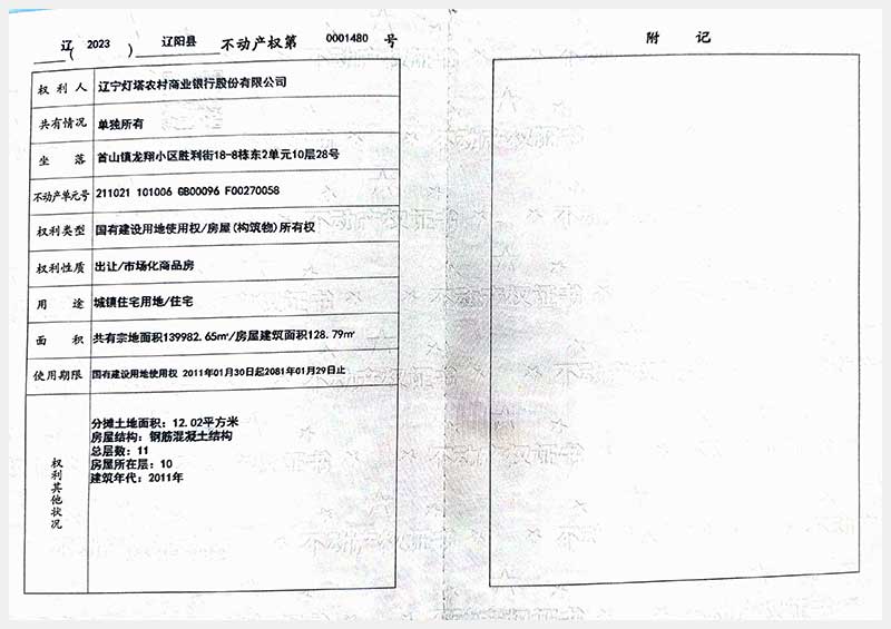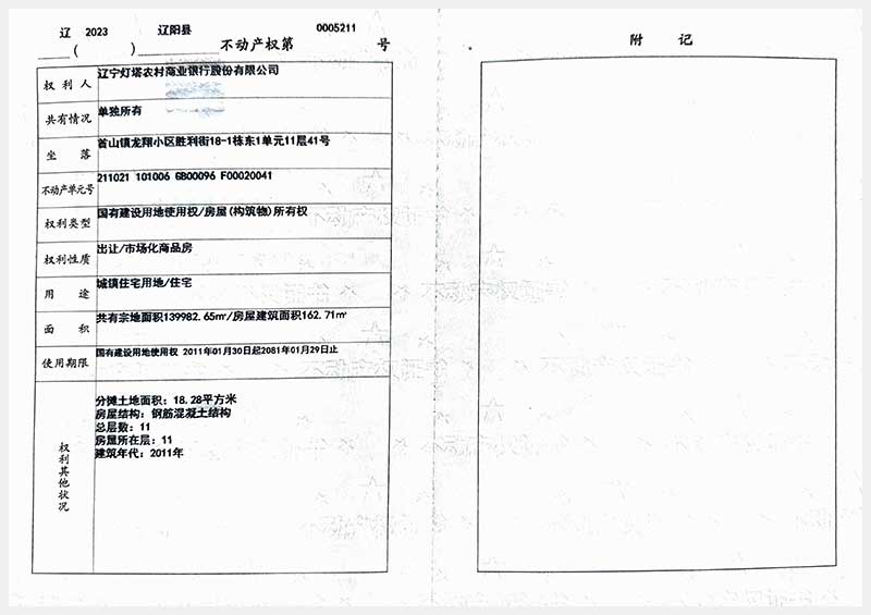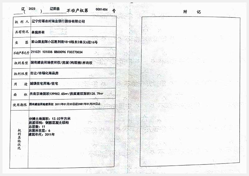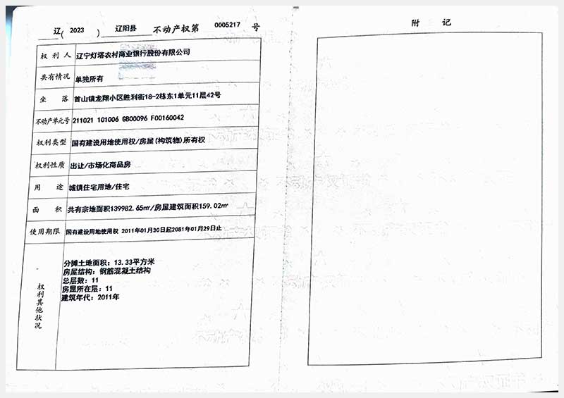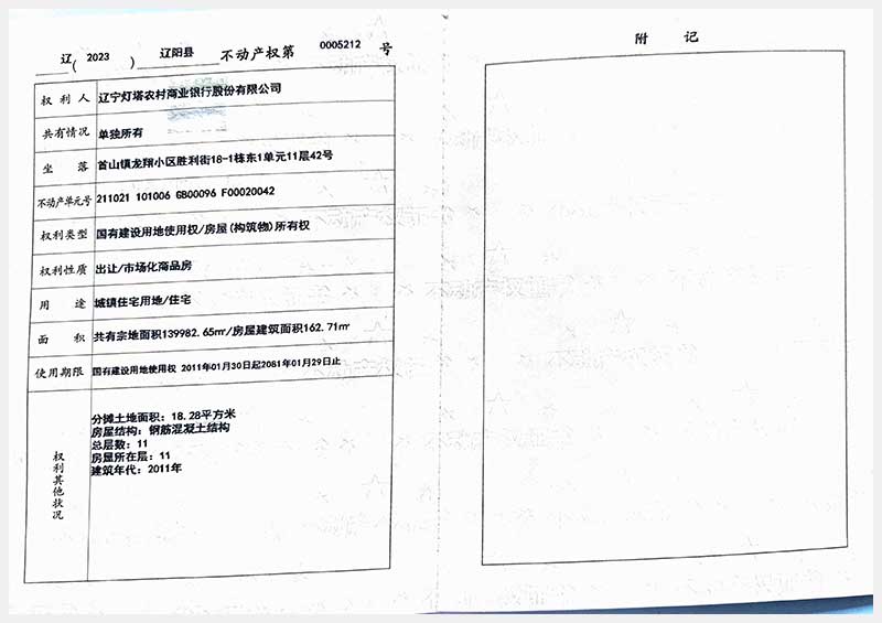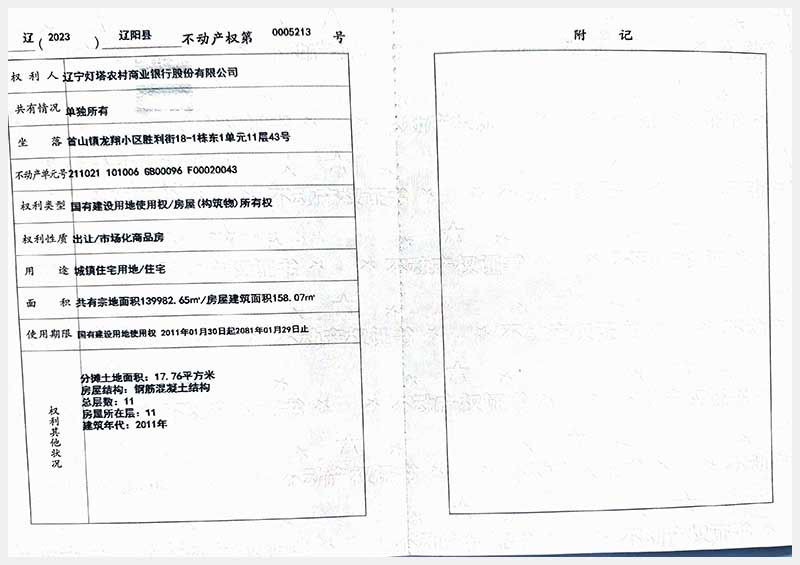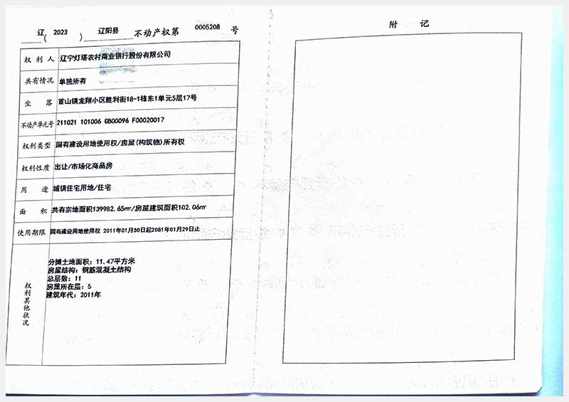 59號 遼陽市首山鎮龍翔小區勝利街18棟房產