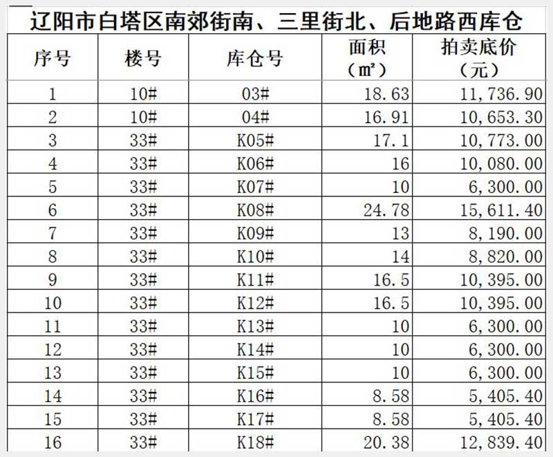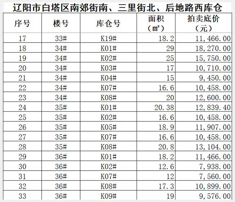 名稱:遼陽市白塔區南郊街南、三里街北、后地路西(華御世家)庫倉 面積:8.58㎡—29㎡(詳見圖表) 瀏覽次數:163