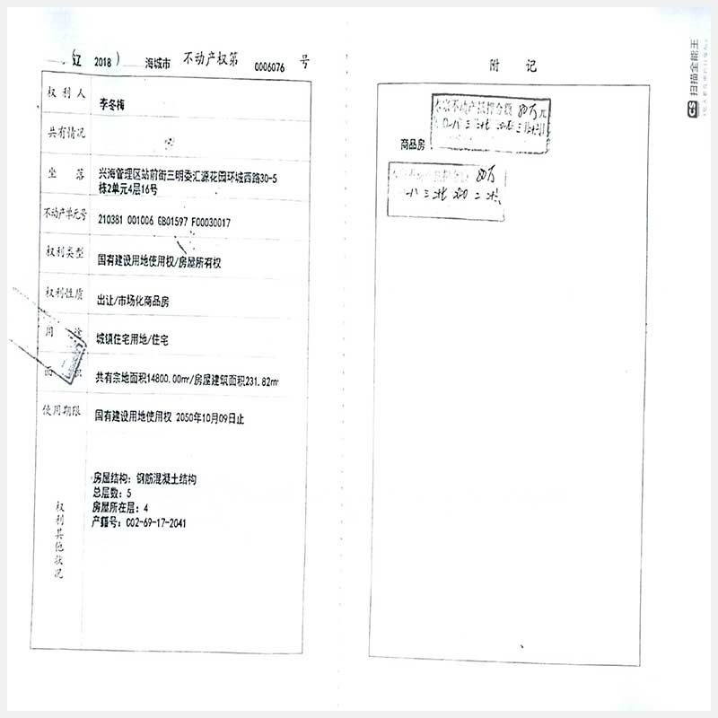 名稱:海城市興海管理區站前街三明委匯源花園環城西路30-5棟2單元4層16號房產 面積:231.82㎡ 瀏覽次數:130