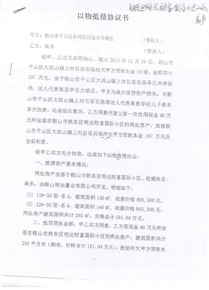地址: 鞍山市鐵東區明達財富國際小區 標的號:40-1