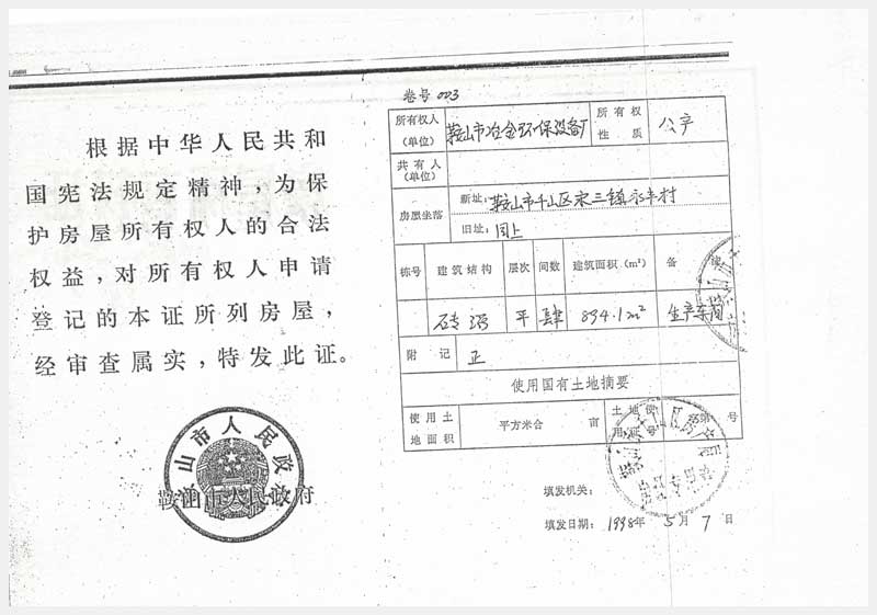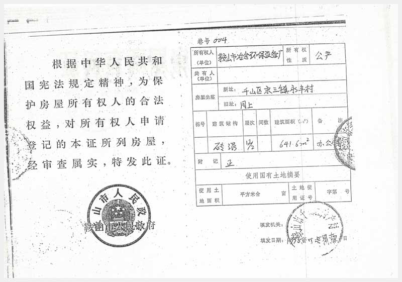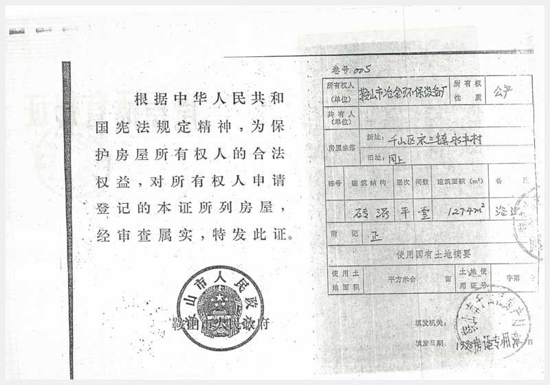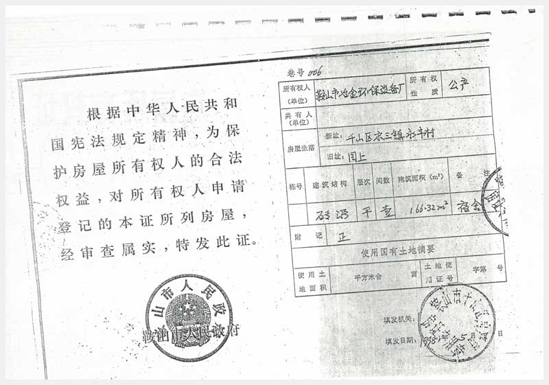 4號 鞍山市千山區宋三鎮永豐村廠(鐵西原九道街265號乙)房及集體土地使用權