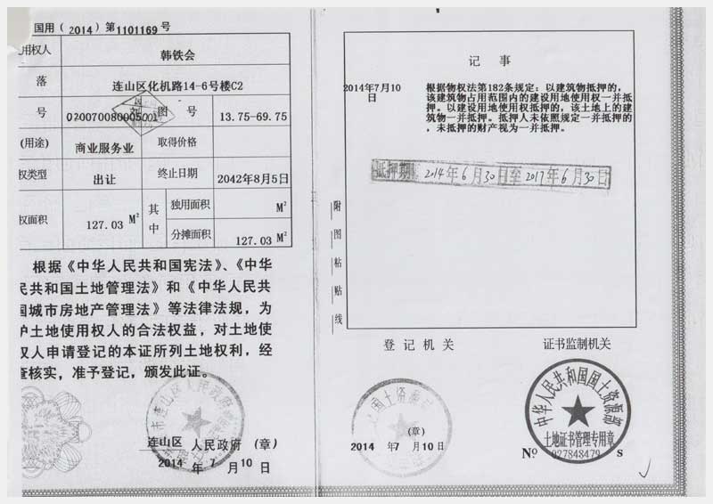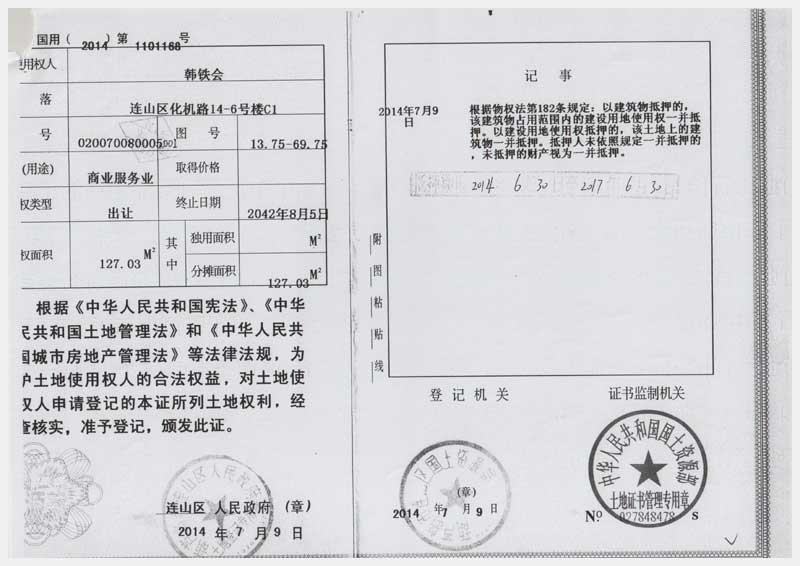 地址:遼寧省葫蘆島市連山區化機路14-6 標的號:1