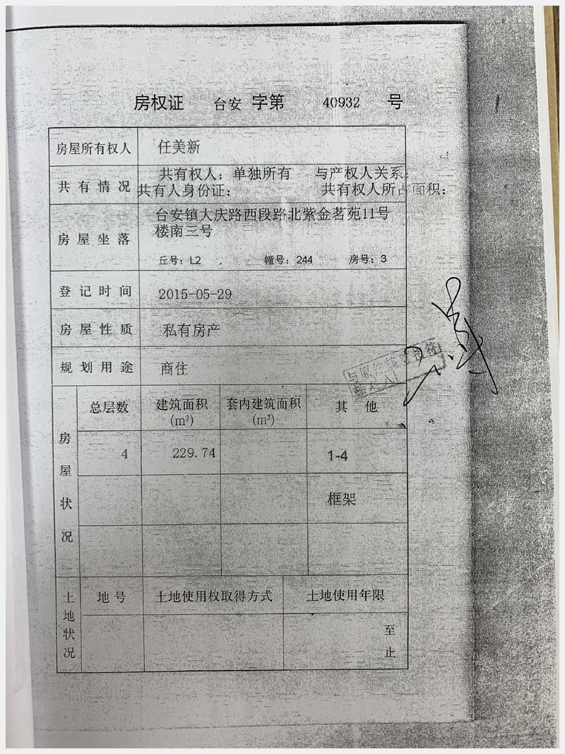名稱:臺安鎮(zhèn)大慶路西段北紫金茗苑11號樓南四號 面積:房產(chǎn):229.49㎡、土地:112㎡ 瀏覽次數(shù):1733