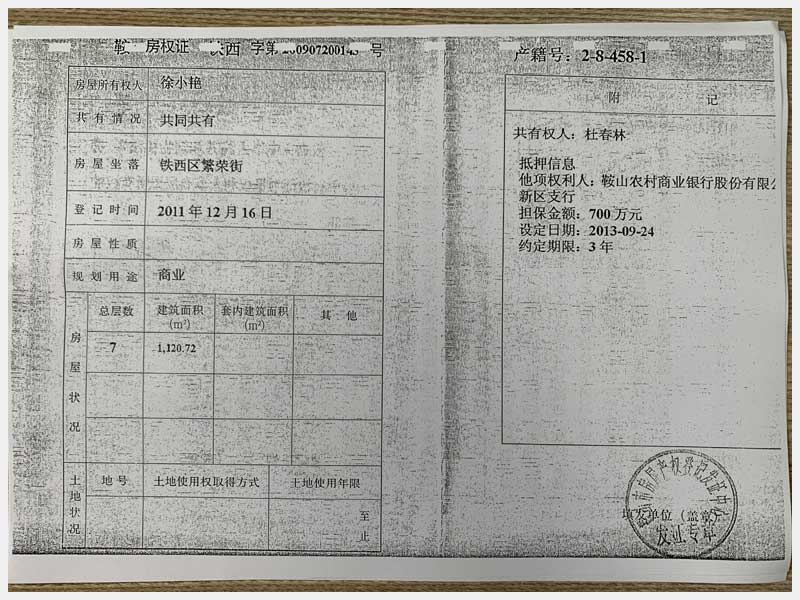 名稱:鞍山市鐵西區繁榮街房產 面積:1120.72㎡ 瀏覽次數:1593