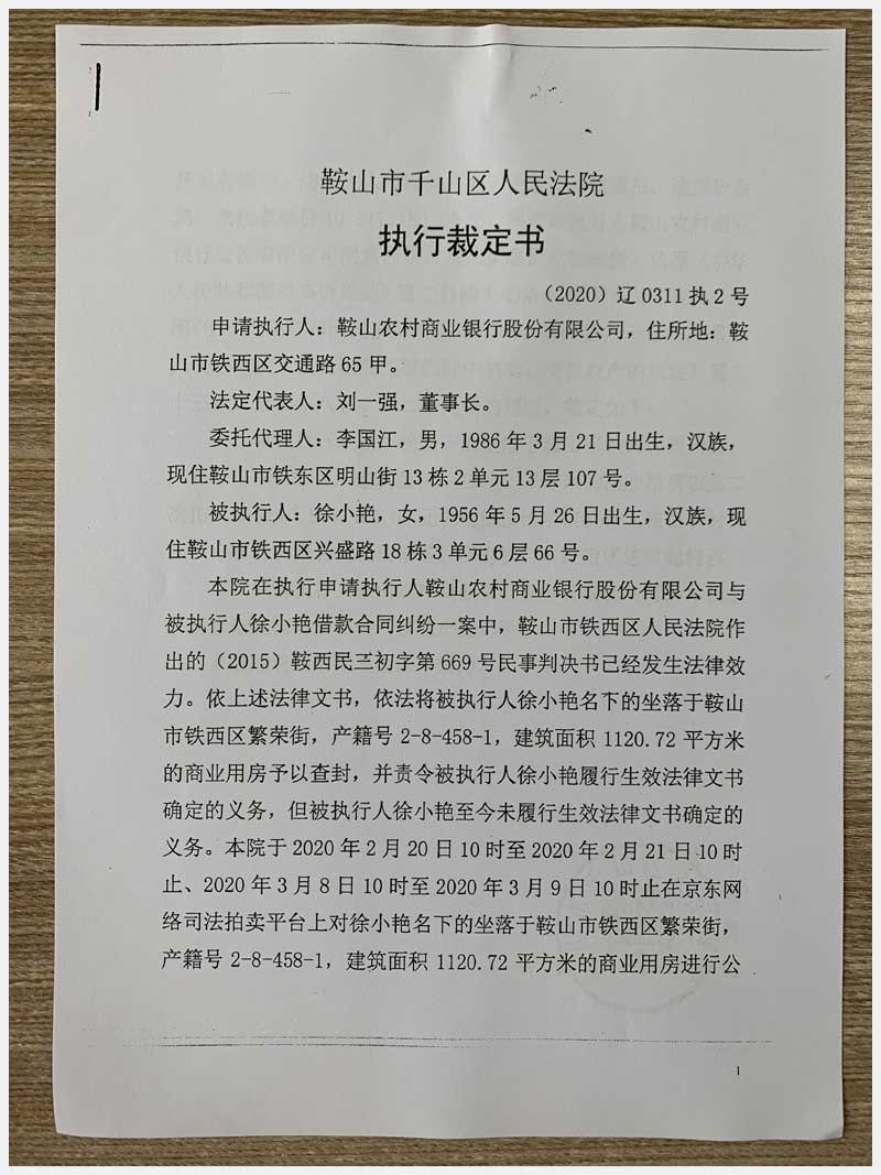 地址:鞍山市鐵西區繁榮街 標的號:52