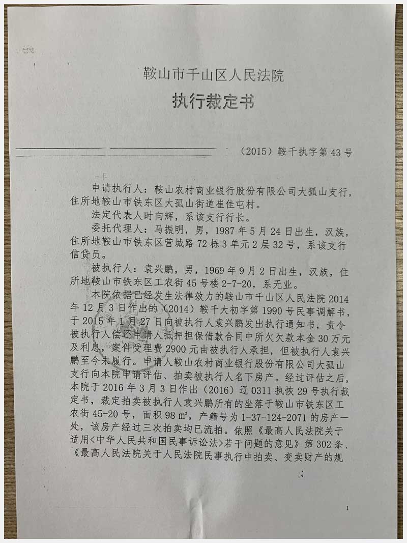 地址:鞍山市鐵東區工農街 標的號:56
