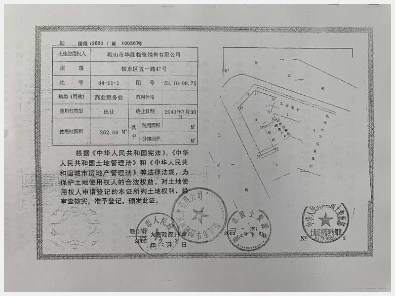 名稱:鞍山市鐵東區五一路12號房產 面積:1256.42㎡ 瀏覽次數:1554