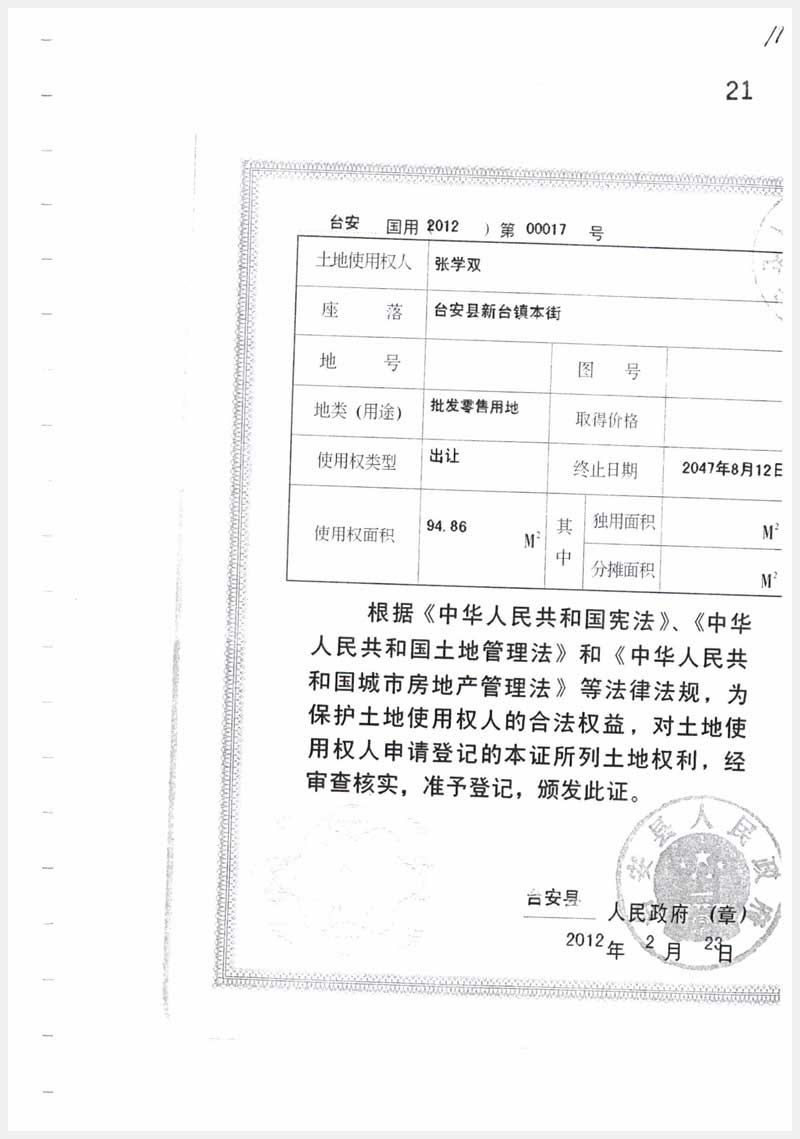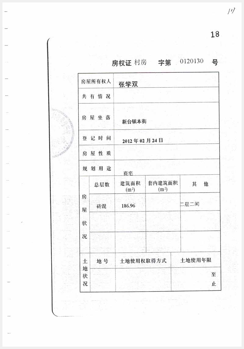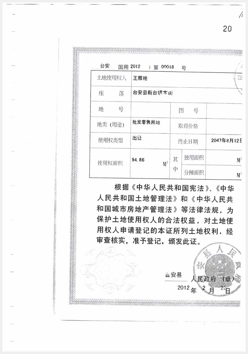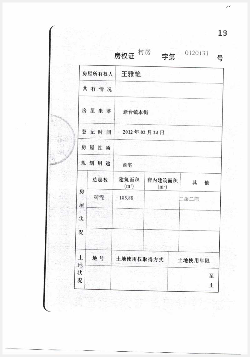 名稱:臺安縣新臺鎮本街2處房產 面積:185.88㎡、186.96㎡ 瀏覽次數:1190